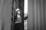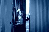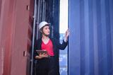 Business woman Work in an international shipping yard area Export and import delivery service with containers
