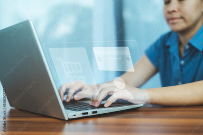 Shopping online by credit card concept, Woman Shopping online by credit card at home , Credit card shopping online