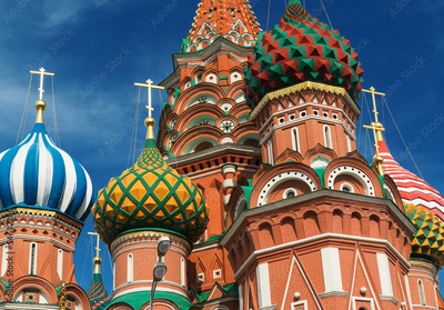 Famous St Basil's cathedral on Red Square close-up, Moscow, Russia