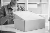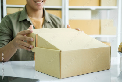 Young entrepreneur checking order preparing for delivery.