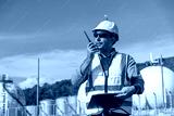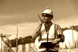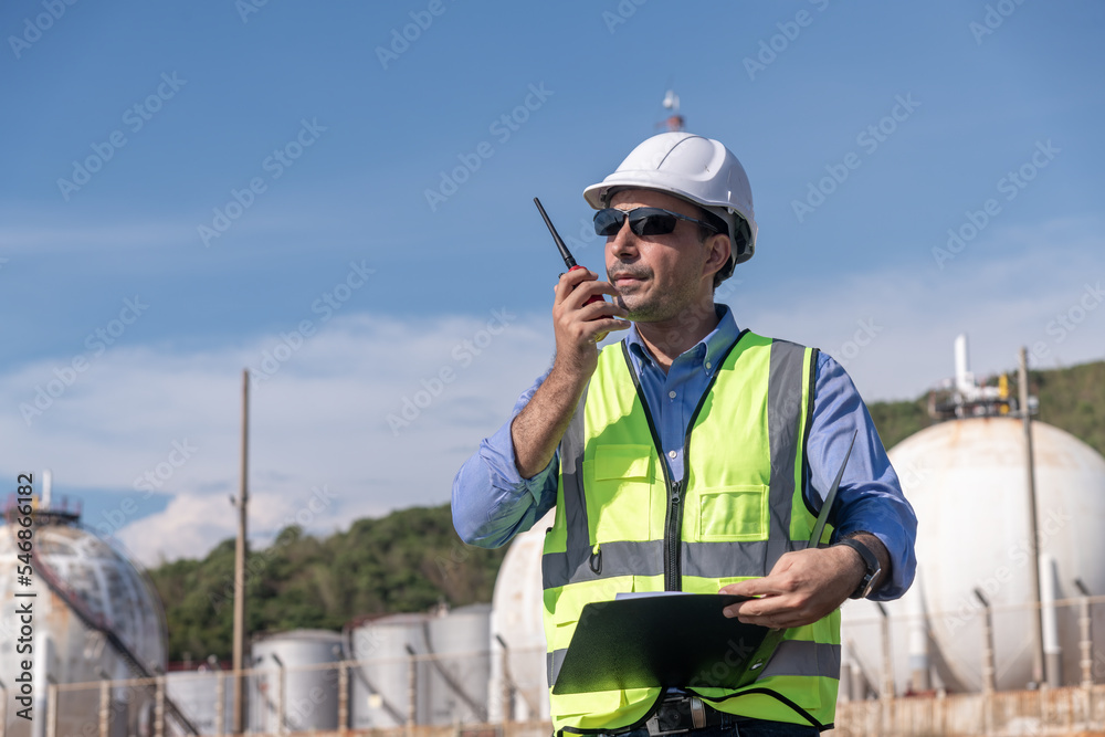 Worker under checking the waste water treatment pond industry large to control water support industry