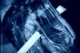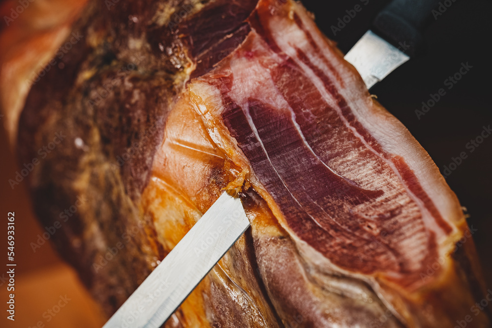 Dry-cured spanish ham Jamon with knife.