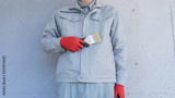 外壁塗装のイメージ|コンクリート壁と刷毛を持つ作業員