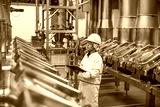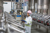 Male worker inspection the process of food drink at the manufacturing vertical factory stainless.