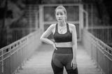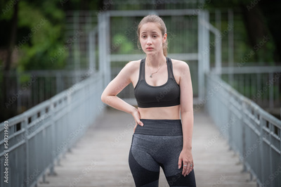 Caucasian Woman practicing yoga position at park, Beauty women yoga training body healthy