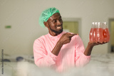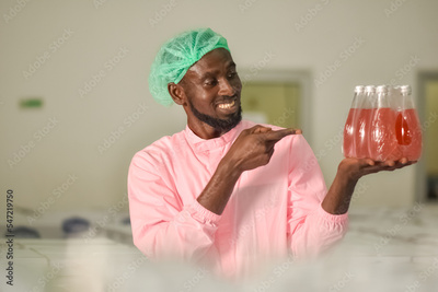 American worker inspecting beverage in factory, American worker employee food factory industry