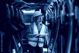 worker checking job in plant room. worker co-worker on Air condition system planton background. engineer female and male checking on Air condition plant. Two worker working on Air condition (HVAC).