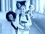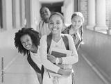School, friends and portrait of group of children in hallway excited for lesson, learning and class. Education, friendship and happy young students with backpack, books and ready for primary school