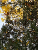 many yellow autumn leaves in nature