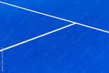 Blue paddle tennis court. Blue court with white lines. Horizontal sport poster, greeting cards, headers, website.