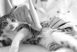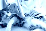 Cat having ultrasound scan in vet office