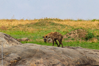 Spotted hyena (Crocuta crocuta), also known as the laughing hyena, in Serengeti National park in Tanzania