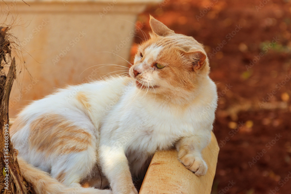Stray hungry cat on the city street