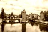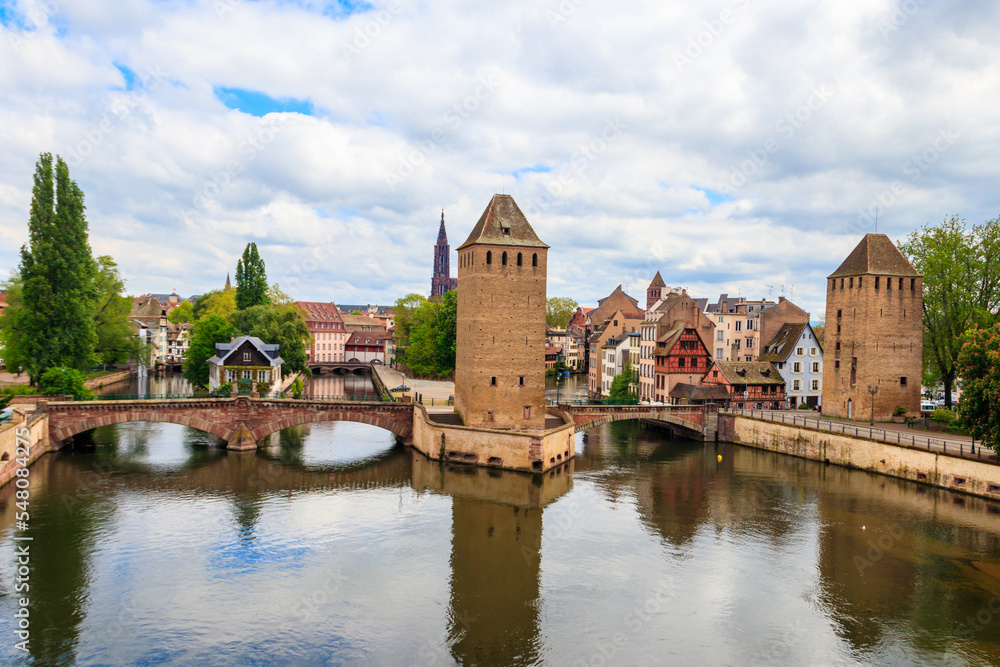 View on medieval bridge Ponts Couverts over the River Ill in Strasbourg, Alsace, France