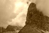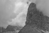Helicopter used for rescue operations on Tre Cime di Lavaredo in Dolomites, Italy.