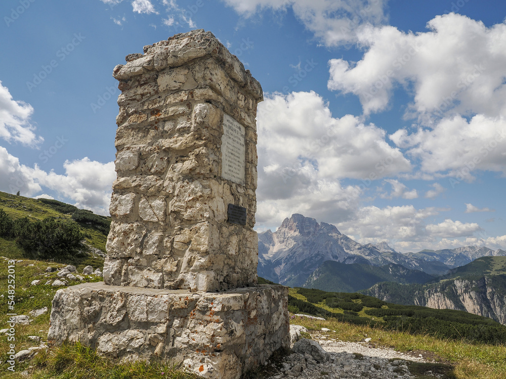 WW1 Trenches at Monte piana 2.324 Meter high mountain in Sextener Dolomiten mountains on border to Italy and Austria.