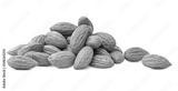heap of peeled almonds on a white isolated background