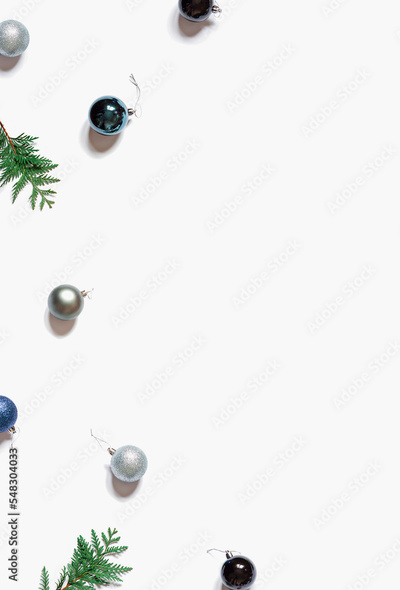 Christmas or New Year concept pattern with festive decorations. Top view. Copy space