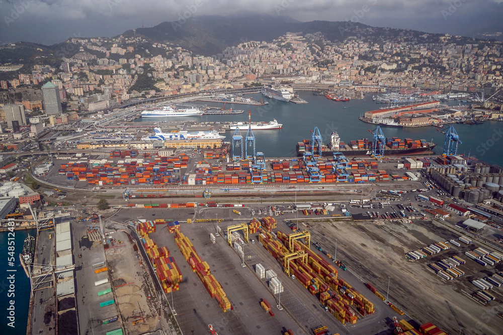 GENOA, ITALY - OCTOBER 24 2022 - The harbor while landing at the airport