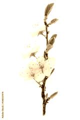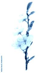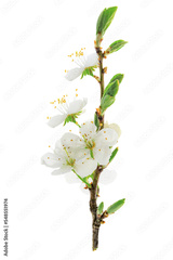 Beautiful blossoming cherry branch isolated on a transparent background in close-up