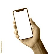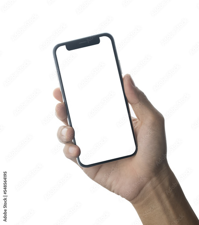Hand holding Mobile smart phone on white background technology, Mobile phone screen mockup design on isolate with clipping path