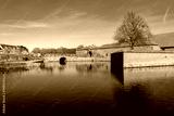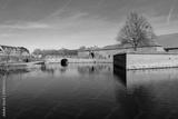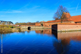 Brick stone bridge across the lake surrounding Frederiksborg castle in Hillerod, near Copenhagen, Denmark
