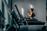 Side view of Asian women running or jogging on treadmill at gym.sport indoor burn weight and strong health.Fitness healthy lifestyle and workout concept.