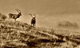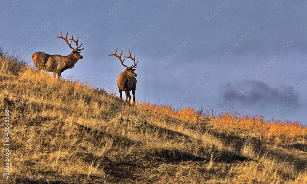 Bull elk pair on slope along Prairie Drive at Bison Range, formerly National Bison Range, on Flathead Indian Reservation