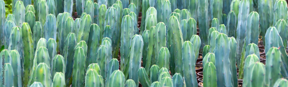 Cochal cactus Myrtillocactus a variety of farm grown in greenhouses industrial, format banner header wide size, place sample text.