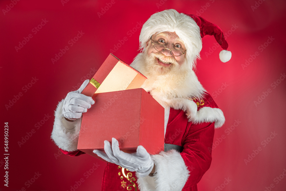 Emotional senior male model old man with a natural white beard in the role of Father Christmas