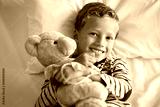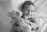 Smiling little boy lying on hospital bed