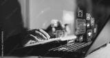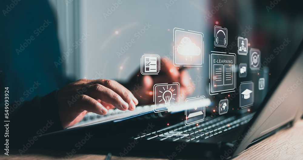 online exam concept, choose correct answer in test. checklist and online testing on laptop. online exam test with laptop. on-line questionnaire results on desktop. quiz.