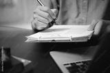 Businessperson signing contract, partnership agreement and Lawyer, broker or HR manager executive manager hand filling paper. business document signature for insurance or financial.
