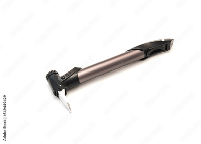 Compact mini bike pump fit with presta and schrader valve made of aluminum alloy and durable plastic isolated on white background