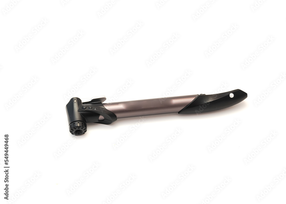 Side view compact mini bike pump fit with presta and schrader valve made of aluminum alloy and durable plastic isolated on white background