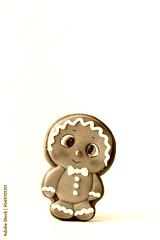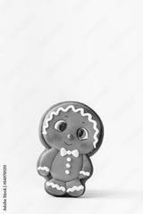 Christmas gingerbread man with white icing isolated on white background. Homemade festive traditional gingerbread cookies. Merry Christmas