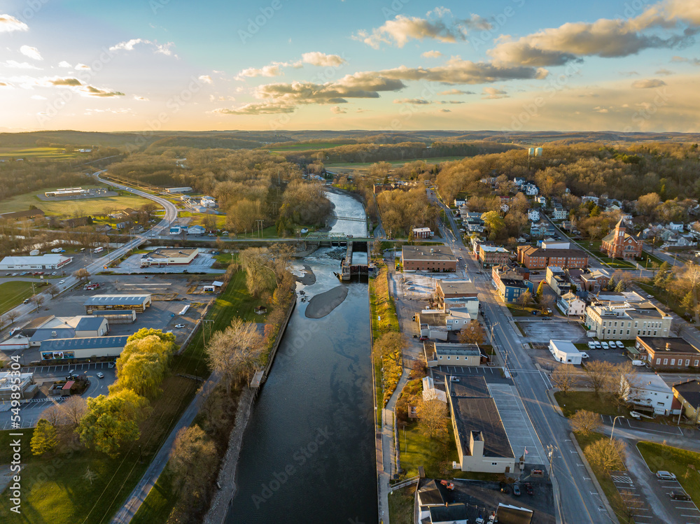 November 20, 2022 Afternoon fall, autumn aerial drone photo of the Hamlet of Lyons New York, USA.