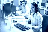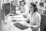 Professional helpline call center agent operator woman wearing headset working in customer care support service.