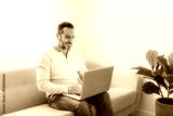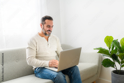 technology, internet, communication and people concept - young man using laptop at home