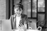 Young asian businesswoman working at office using mobile phone..
