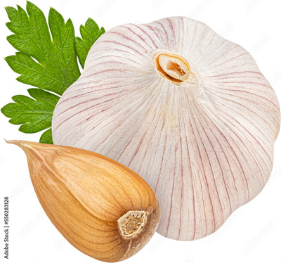 Garlic with parsley leaf isolated