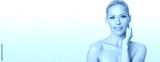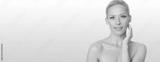 Beautiful Ukrainian blonde with perfect skin on pink background.