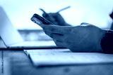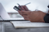 Man hands holding a credit card and using smart phone for online shopping.