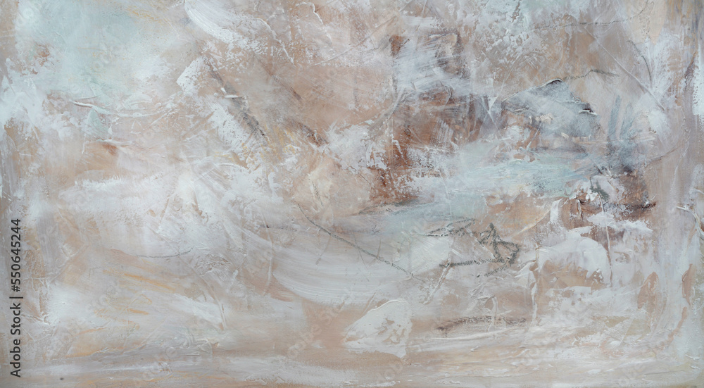 Abstract modern art. Closeup view of a contemporary painting with beautiful brush texture and white color palette.