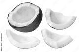 Coconut Cocos nucifera shelled, kernel meat, cracked, irregular shaped isolated png