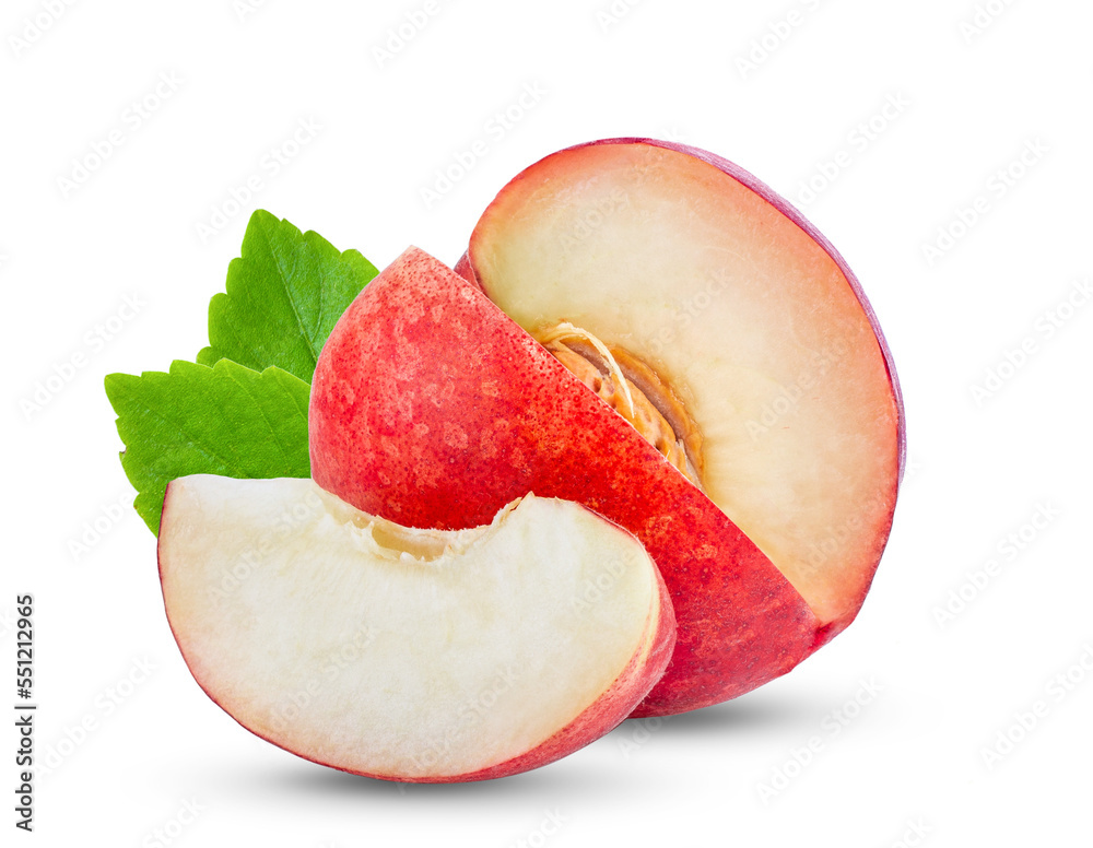 Peach fruit with leaf isolated on transparent png
