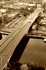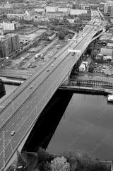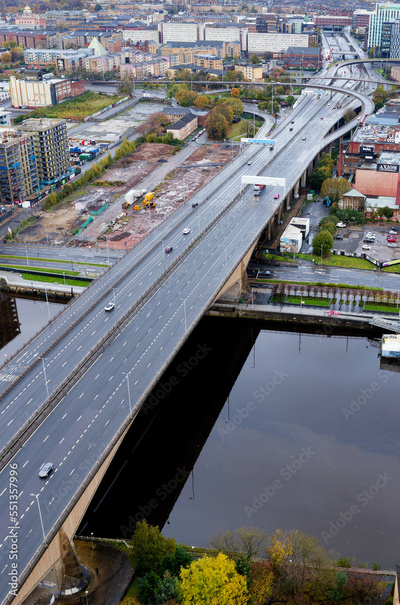 Aerial view of the Kingston Bridge over the River Clyde and M8, M74 Motorway
