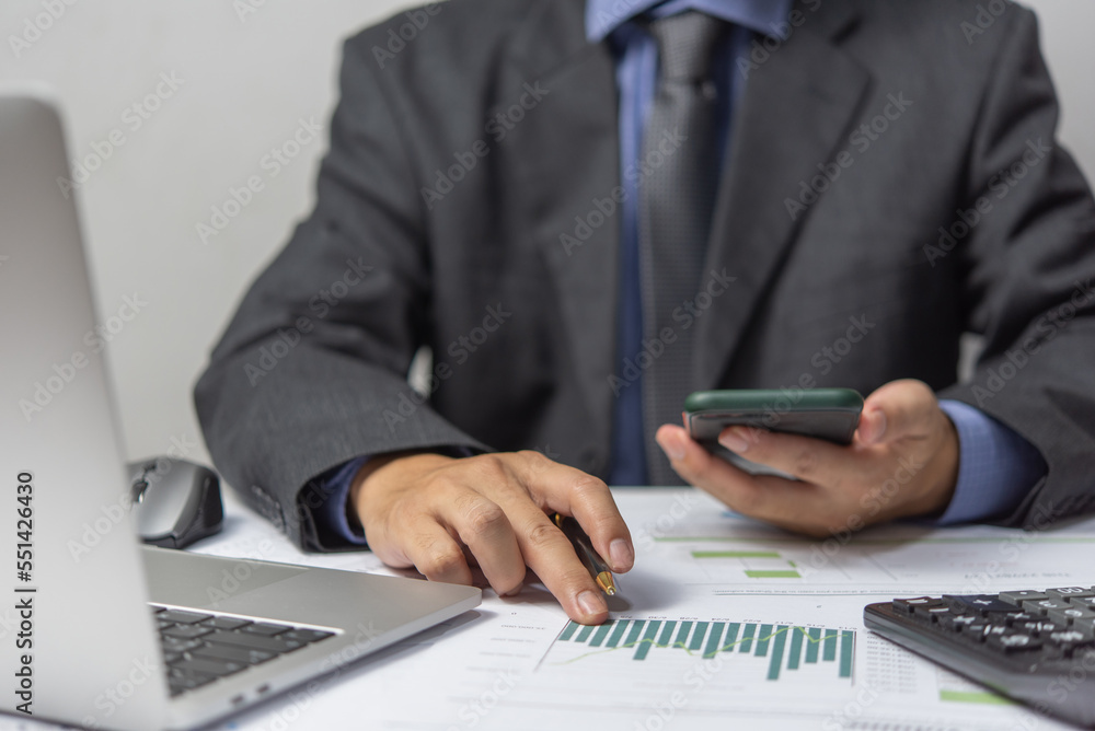 Businessperson document charts and graphs report statistic marketing and accounting showing the results of their successful.