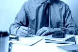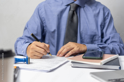 Businessman checking document data accounting and paperwork tax finance or reading law information.Business report contract signature on desk.