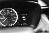 Dashboard warning lights for driving door open with LED odometer and speedometer at 0 in parking mode
